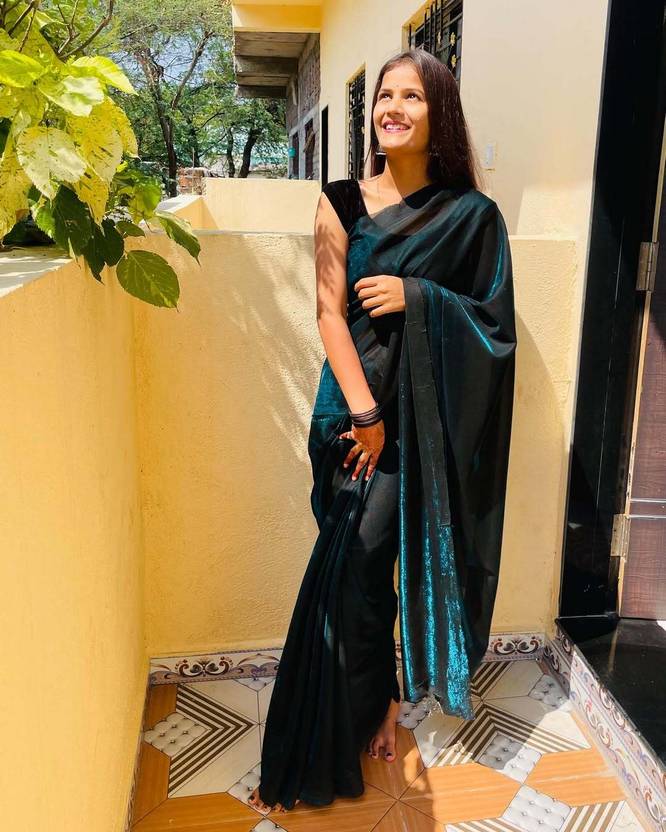 Vraggi Solid/Plain Bollywood Lycra Saree (Green)