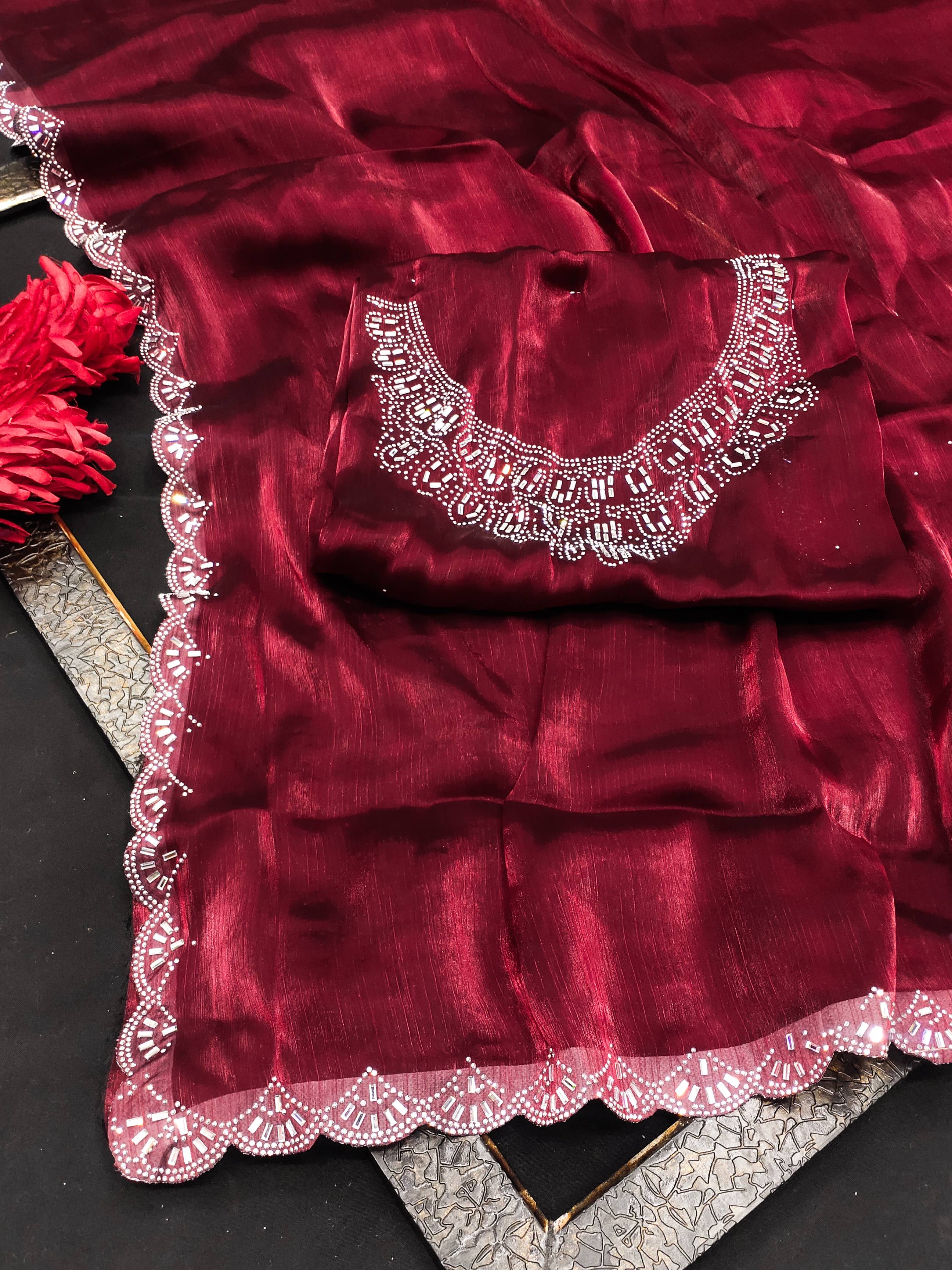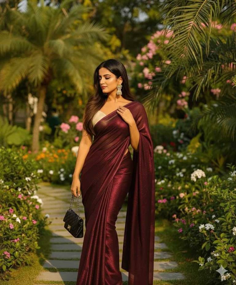 Vraggi Solid/Plain Bollywood Lycra Saree (Maroon)