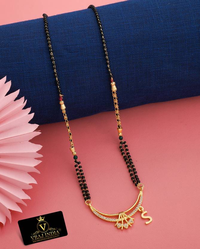 Vraj india "S" Letter gold-plated name alphabet Pendant Mangalsutra design for women Brass Mangalsutra