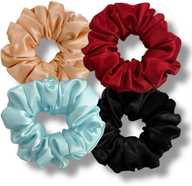 VRAJDRA Vibrant Satin Scrunchie Set – Pack of 4 (peach, Red, Sky Blue & Black) Rubber Band (Blue, Black, Red, Orange)