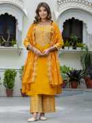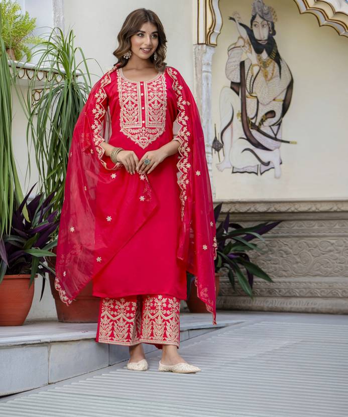 The Silk Fabric in this attractive Color ready to wear Kurta Set will make sure that the fitting of this beautiful readymade Kurta Set looks elegant on you. Crafted from Silk Fabric, it is light in weight and will be soft against your skin. Its unique design and beautiful colour will fetch a lot of second glances as you club it with contrast colored pumps and flashy accessory. Our Products are Made and stitched using high grade fabrics and yarns under the strict surveillance of our well-versed Executives. It is capable of making you look gorgeous. Wear it and put your step in the world of fashion. It looks stunning every time you match it with accessories.
