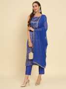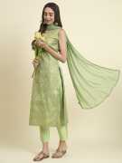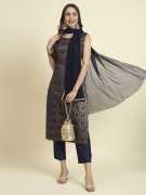 Kurta Fabric: Cotton Silk Blend, Bottom wears Fabric: Silk Blend, Duppata Fabric: Nazneen dupatta 2.25 meter, Top Length: 44 to 45 inch Approx, Bottom Length: 37 inch, Dupatta Length: 2.20mtr Approx, Inner: Full inner in Kurta