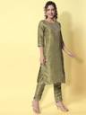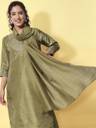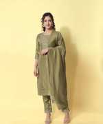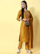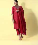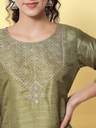 Our Cotton Silk Blend Kurta Pant With Embroidered Chanderi Dupatta, Straight Silk Kurta Pant & Dupatta has a Round Neck, 3/4 Sleeve, Straight hem, side slit. It will keep you comfortable for a Party Wear look. Pair it with high heels and look effortlessly chic and fashionable
