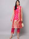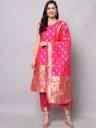 VredeVogel Cotton Silk Jacquard Kurta Pant With Banarasi Silk Dupatta, Straight Silk Kurta Pant & Dupatta, Kurta Has a Round Sleeveless, Straight Hem, Side Slit. It Will Keep You Comfortable for a Party Wear Look. Pair It With High Heels and Look Effortlessly Chic and Fashionable.