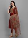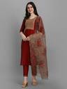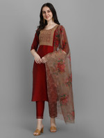 Flaunting a classic silhouette, with a round-neck collar, three-fourth sleeves, and ankle-length pants, the VredeVogel Women’s Kurta, Pants, and Dupatta Set is sure to turn heads when you step out in it.