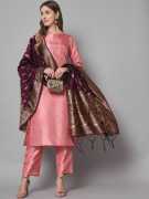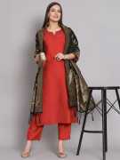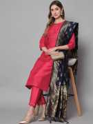 VredeVogel Silk Kurta Pant, Straight Silk Kurta Pant & Dupatta Has a Round Neck, 3/4 Sleeve, Straight Hem, and Side Slit. It Will Keep You Comfortable for a Party Wear Look. Pair It With High Heels and Look Effortlessly Chic and Fashionable