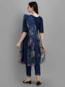 Flaunting a classic silhouette, with a round-neck collar, three-fourth sleeves, and ankle-length pants, the VredeVogel Women’s Kurta, Pants, and Dupatta Set is sure to turn heads when you step out in it.
