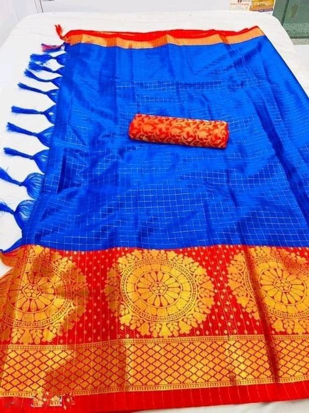 VRINDITA FASHION Woven Madurai Art Silk, Cotton Silk Saree (Blue)
