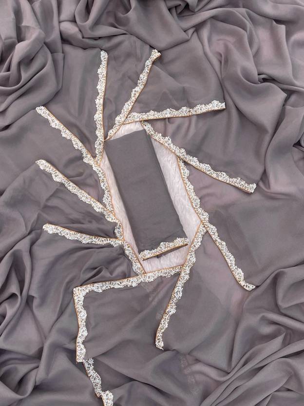 HfLifeStyle Solid/Plain Bollywood Georgette Saree (Grey)