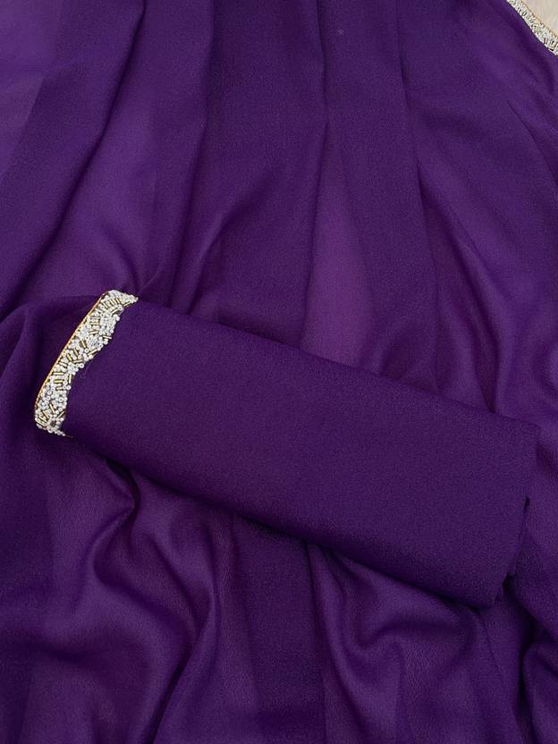 LACEMOTI-Gerogette Simmer Fabric Full Solid\ Plain With Small Moti Lace Side Border New Trending Saree
