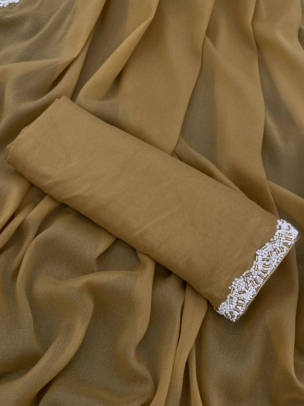 Gerogette Simmer Fabric Full Solid\ Plain With Small Moti Lace Side Border New Trending Saree