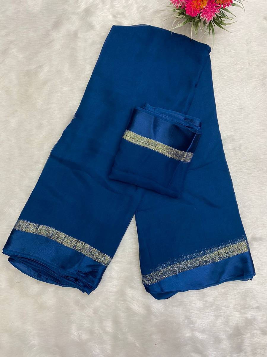 Solid/Plain Bollywood Viscose Rayon Saree (Blue)