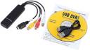 | Additional Features | - Features: Send Video to your PC through USB port Record Video in DVD/VCD/MP3/4 format and save in hard drive Watch Video on Desktop/Laptop Monitor Screen With Professional and easy to use video editor software: Ulead Video Studio 10.0 SE DVD Video tapes to DVD converter Video & audio recorded always in sync Support multiple video inputs of S-Video & Composite RCA Video, Excellent Video Selector/Switcher: Smooth video source switching between PC, Composite Video input or S-Video input instantly Supports worldwide video systems including NTSC, PAL & SECAM Snap-shot button for saving still pictures as BMP or JPEG file Resizable Video Window up to full screen display WDM Compatible: It conforms to WDM standard and works with all video software compatible with this standard Fully compatible with Microsoft`s DirectShow, * With USB 1.1 connection: the video resolution reaches up to 320x240 at 30 fps for NTSC and 320x288 at 25 fps video for PAL Video input:1 S-video input and RCA type composite video input Video system supported: NTSC, PAL and SECAM Supports all video capturing/ recording formats including DV, MPEG-1, MPEG-2, MPEG-4 with DivX codec, SVCD/VCD, DVD, AVI, WMV, Compatible with messaging applications: NetMeeting, MSN Messenger, Yahoo Messenger, ICQ. Video Conferencing software is not included but can be free downloaded from internet Specifications: Green LED for Power indicator Dimension: 88mm x 28mm x 18mm Full-Screen Video Resolution Input: * With USB 2.0 connection: the output resolution will be full-screen DVD video resolution up to 720x480 at 30 fps for NTSC and 720 x 576 at 25 fps for PAL, High MPEG bit rate adjustment up to 10000K bps Supports color adjustment including brightness, contrast, saturation, hue and sharpness control USB powered operation. No power adapter needed Power Consumption: 5VDC, 250mA(max) through USB port Package includes: 1 X USB VIDEO AUDIO CAPTURE ADAPTER VHS TO DVD HDD TV CARD 1 X User Manual 1 X CD-ROM 1 X USB extension cable