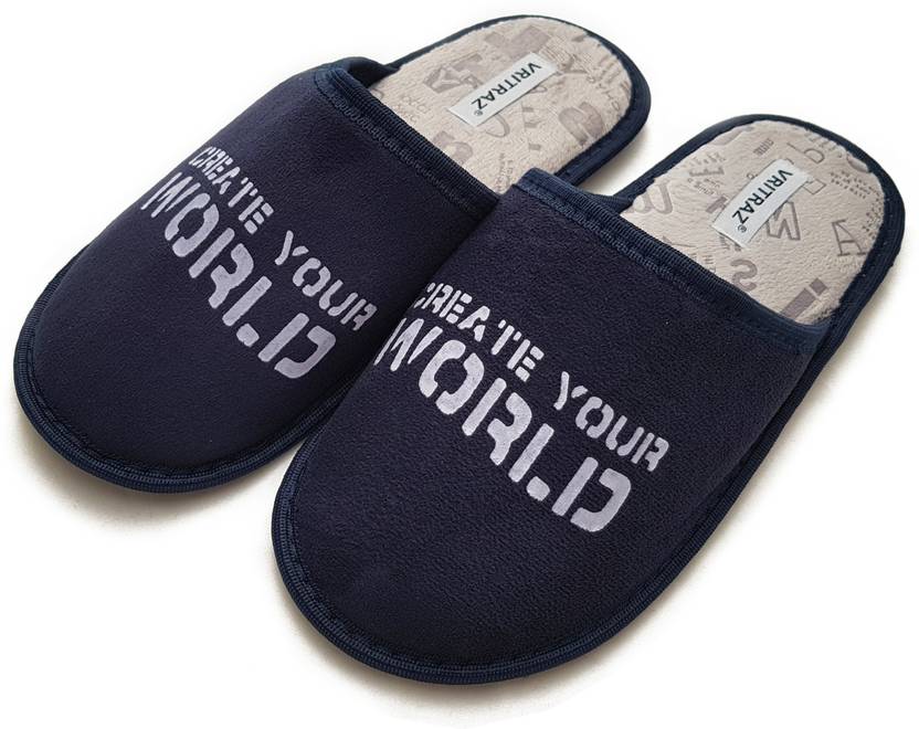 VRITRAZ Cotton Fur Flax Comfort Slip On Closed Toe Indoor Clog House Slipper Word Men Slippers (Navy, White , 8)