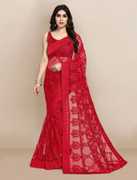 GALANI ENTERPRISE Embroidered Bollywood Net Saree (Red)