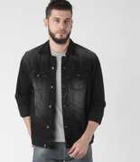 You'll love the style, comfort and durability of this must-have Carbon Black jacket. When you're going to a concert with your buddies, layer your favourite tee with this VROJASS jacket. Black solid denim jacket, has a spread collar, six pockets, button closure, Roll-up, straight hem, unlined lining