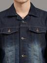 Blue solid denim jacket, has a spread collar, Six pockets, button closure, Roll-up sleeves, straight hem, unlined lining