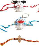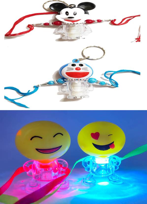 VRSPKA Kids RAKHI 23146 Plastic (PVC) Rakhi Set (Doraemon ,Micky Mouse and two Smiley light Kids Rakhi)