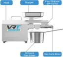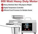 Our VRT oil seeding machine, designed for efficiency and ease of use. This fully automatic device features a power-saving design, ensuring optimal energy consumption while delivering high performance. Equipped with a double cooling fan, it operates silently, making it perfect for any environment. The machine allows you to set the temperature according to your material, with a quick 8-minute pre-heat time, ensuring precise extraction. Constructed from food-grade stainless steel, it boasts a compact size and weight 13Kg and a capacity to extract between 4 to 8 kg of oil per hour at RPM of 200, depending on the material used. With a power rating of 800 watts and a voltage of 220V, this machine is versatile and reliable. It can extract oils from a variety of seeds, including peanuts, sunflower seeds, walnuts, and more, making it an essential tool for both home and commercial use. For safe cleaning, always disconnect the power and allow it to cool. Backed by a 1-year warranty on electric parts and motor, this oil press ensures reliability and ease of use.