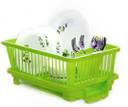 VRTAJJ Dish Drainer Kitchen Rack Plastic 3 in 1 Large Sink Set Drying Washing Basket (GREEN)