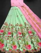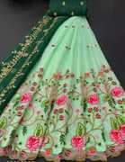 Care Instructions: Dry Clean Only Lehenga Fabric - Velvet, free size Package Contains: 1 Semi-Stitched Lehenga with 2 Dupatta and unstitched Blouse Lehenga Work: ZariAnd Thread Embroidery work ; Blouse Work: Zari an Thread Embroidery work ; Dupatta Work: Zari Embroidery work Functional Wear like Wedding, Mehndi Function, Special Occasions like Ring Ceremony, Office party or days special, Party Wear, Night outs and many more.