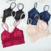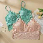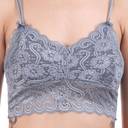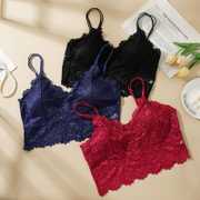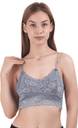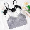 The image presents a carefully styled flat-lay fashion product image featuring two lace bralettes arranged in a layered composition on a smooth fabric surface. The bralettes are designed with intricate floral lace, scalloped trim, and slender adjustable straps, emphasizing a soft silhouette and breathable construction. The fine textile detailing, sheer fabric quality, and delicate craftsmanship convey a sense of comfort, elegance, and everyday wearability. The clean layout and subtle decorative accents enhance the minimalist styling, making the image well suited for lingerie catalogs, online retail listings, fashion marketing, editorial content, and lifestyle branding focused on modern, feminine apparel.