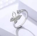 Silver Adjustable Size AD Diamond Nug Hollow Wings Butterfly Thumb Finger Rings