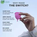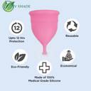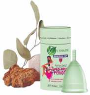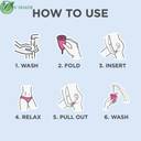 VSHADE MENSTRUAL CUP FOLD & HOLD- Press the sides of the cup together, then fold it in half again. Hold the folded sides firmly between your thumb & forefinger., WASH- Wash your hands & cup well with warm water., INSERT- Relax, gently separate the labia with your free hand & then push the curved edge of the folded cup into vaginal opening. Cup retains min.5- 15-28ML of menstrual blood. Depending on the flow empty the cup 2-5 times daily., REMOVE- Wash your hands well with warm water & soap. Pull gently on the stem until you can reach the base of the cup. Pinch the base of the cup to release the seal & continue to pull down to remove. Simply empty the contents in the toilet, wash it well with warm water & re-insert/store safely till next cycle.
