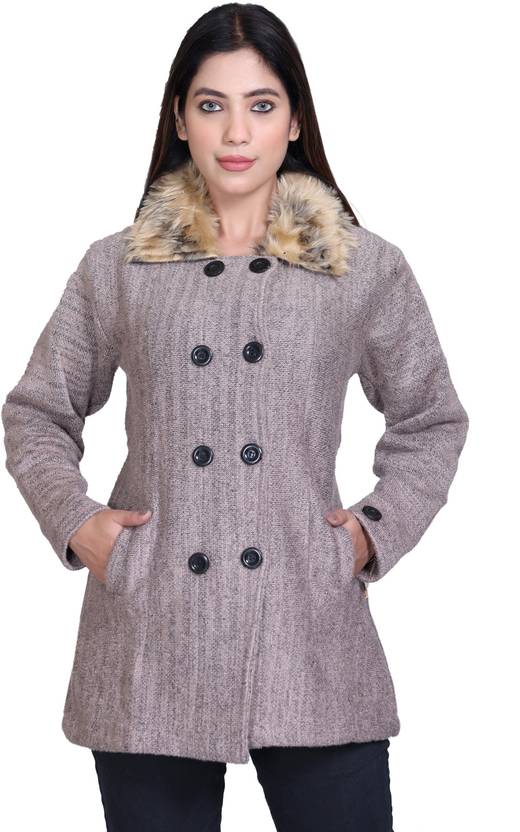 VSHIP Solid Collared Neck Casual Women Grey Sweater