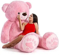 A 4-foot pink teddy bear is a large, soft, and cuddly stuffed animal, designed to bring comfort and joy to anyone who receives it. It stands at about 4 feet tall, making it a delightful oversized companion. Its plush body is made from ultra-soft, pink fabric, with a smooth and velvety texture that invites hugging and snuggling. The teddy bear’s features include a friendly, embroidered face with big, brown eyes, a small black nose, and a sweet, stitched smile. Its arms and legs are designed for easy wrapping around, making it the perfect cuddle buddy. The bear may also have a fluffy white tummy or paws that add a charming contrast to its pink color. This type of teddy bear is often gifted for special occasions like birthdays, anniversaries, or holidays, and it’s perfect for both children and adults who appreciate cute, comforting toys. The size of the bear makes it an ideal decoration for a bedroom or living room, adding a playful touch to any space.