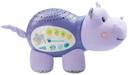 Sweet dreams are ahead with the Lil' Critters soothing Starlight hippo by VTech. This cuddly hippo projects a vibrant Starry night sky onto the ceiling in four different colors to the sounds of peaceful tunes, seven nursery rhymes, nature sounds and lullabies. Colorful light effects enhance visual awareness, while the comforting sounds and songs help soothe them to sleep. This helpful hippo also responds to your baby's cries with calming music. The Parent-friendly volume and timer controls let you choose how loud and long The sounds play. Sleep tight, little one! Requires 2 AA batteries (batteries included for demo purposes only; new batteries recommended for regular use). intended for babies from birth and up.