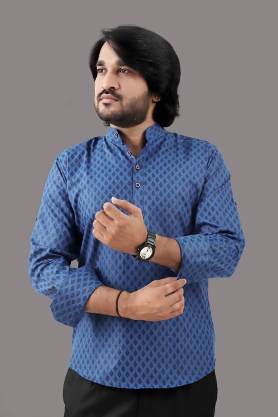 VTEXX Men Printed Straight Kurta (Dark Blue)