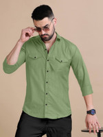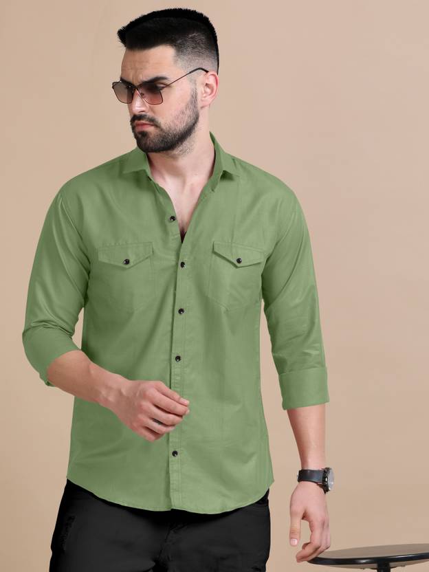 VTEXX Men Solid Casual Green Shirt