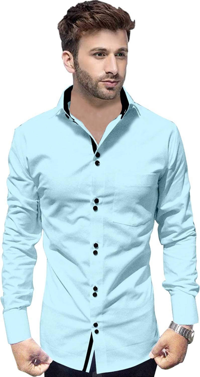 RGSTORE Men Solid Casual Light Blue Shirt