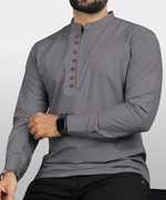 Men’s Casual Short Kurta Shirt with Mandarin Collar & Wooden Buttons