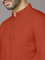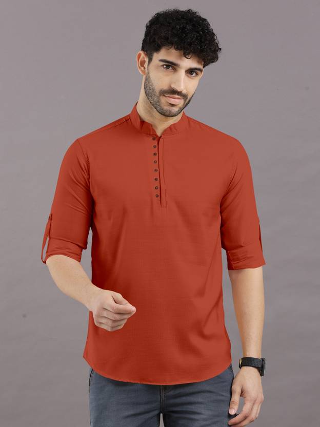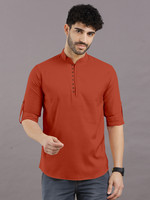 Featuring a sleek and solid pattern, this men’s short kurta embraces simplicity with a modern twist. The plain design enhances its versatility, making it ideal for pairing with a variety of outfits. So, whether it is styled for everyday wear or special occasions, this kurta ensures a clean and polished appearance.