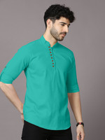 Featuring a sleek and solid pattern, this men’s short kurta embraces simplicity with a modern twist. The plain design enhances its versatility, making it ideal for pairing with a variety of outfits. So, whether it is styled for everyday wear or special occasions, this kurta ensures a clean and polished appearance.