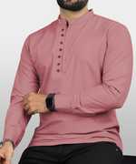 VTEXX Men Solid Cotton Blend Straight Kurta  (Pink)