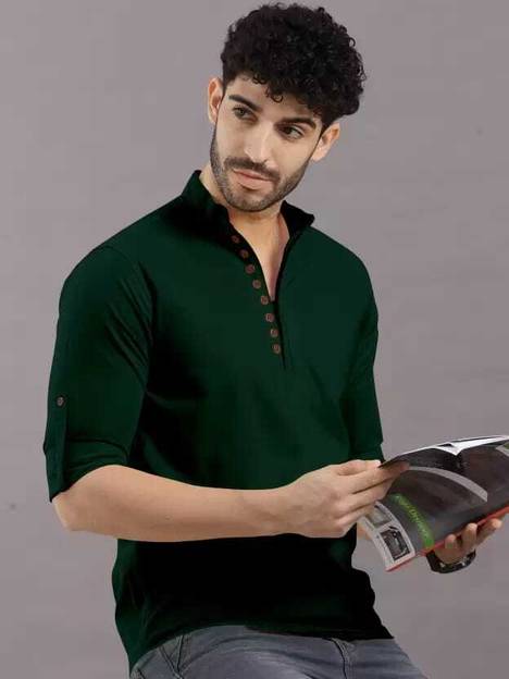 VELLOSTA Men Solid Straight Kurta (Dark Green)