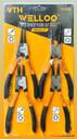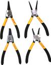 Circlip pliers are special pliers for installing or removing circlips on shafts or insides bores. There are two types of pliers. On external pliers the head opens when the handle is squeezed and the circlip is pushed out. These pliers are used to mount circlips on shafts and guide rods.