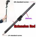 This versatile 2-section extension rod is for handheld, short boom arm stand or reflector arm. With standard 1/4" and 3/8" screw thread you can easily attach flash, point & shoot camera or DV for lighting and shots. By attaching two spring loaded grip clamps to the extension rod, you get a reflector/backdrop holder arm.