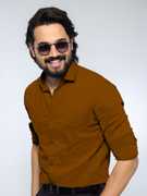 Vuon fabΒ Men Regular Fit Solid Curved Collar Casual Shirt