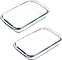 VVSS Borosilicate Glass Baking Tray Transparent 1000 ML Baking Dish (Pack of 2, Microwave Safe)