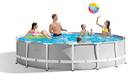 VW_26702 Prism Frame above ground round pool, easy to install, durable and enjoyable for everyone! The PVC used for the swimming pool is made of three layers: an inner layer and an outer PVC layer, both dense and firm, and an intermediate layer of polyester. This is a pool meant to last in the years to provide you countless time of relax in your own garden. The frame of this free standing pool is made out of solid treated steel to eliminate the possibility of rust and corrosion. Included in the package you will find an innovative filter pump with 1250 l/h capacity and a chartidge type A so that you will be ready to enjoy this pool as soon as you get it, without having to wait or purchase additional accessories. The estimated time to assemble this pool is about 20 minutes, a tested operation with two persons.