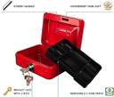 Key lock boxes has double layers, the upper removable one with 5 compartments trays for cash, coins,and keys. The bottom one of the money box is designed for checks, receipts and valuables.
