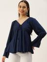 IQRRAR Casual Solid Women Blue Top