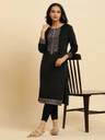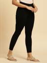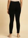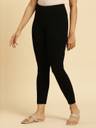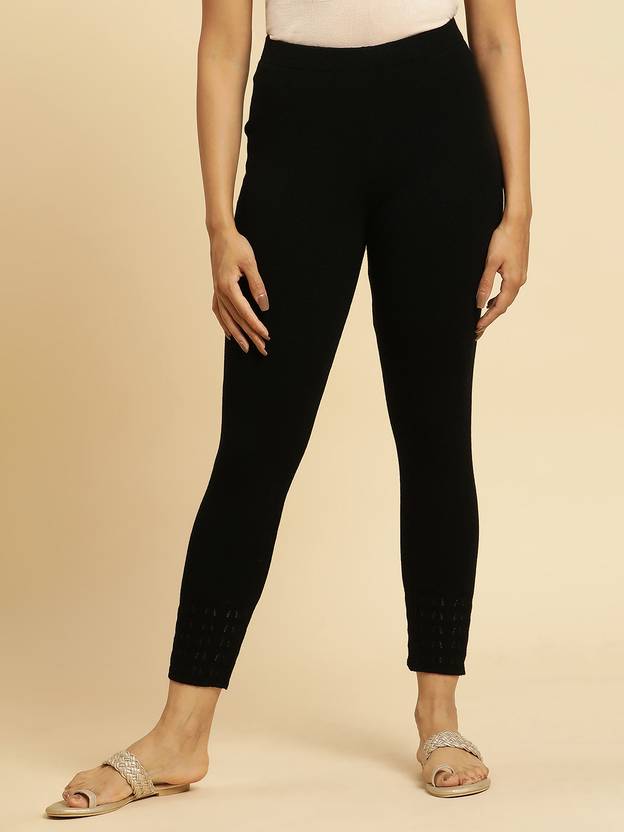 The jet black ankle length tights crafted in acrylic fabric with beautiful knit down border design at hem.