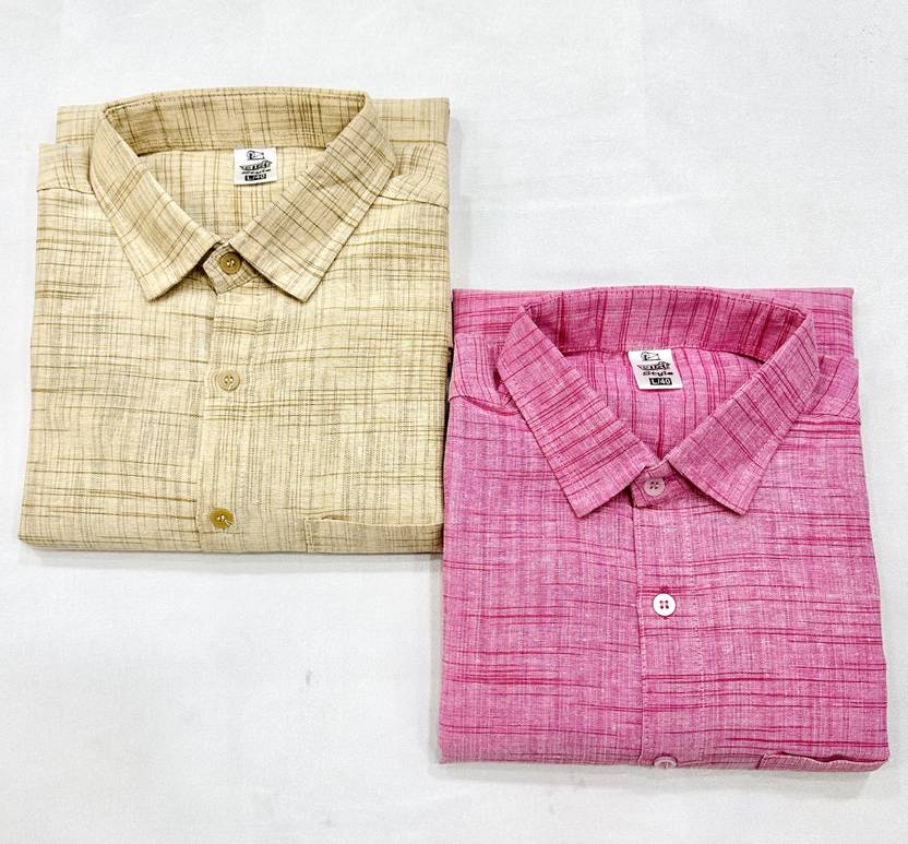 W S TEXTILE Men Solid Party Beige Shirt (Pack of 2)