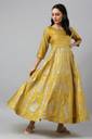 Yellow Panelled Kalidar Ethnic Dress with Sequin