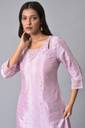 Light purple embroidered kurta set. This set includes light purple kurta with organza insert. The set also comes with a matching bottom.